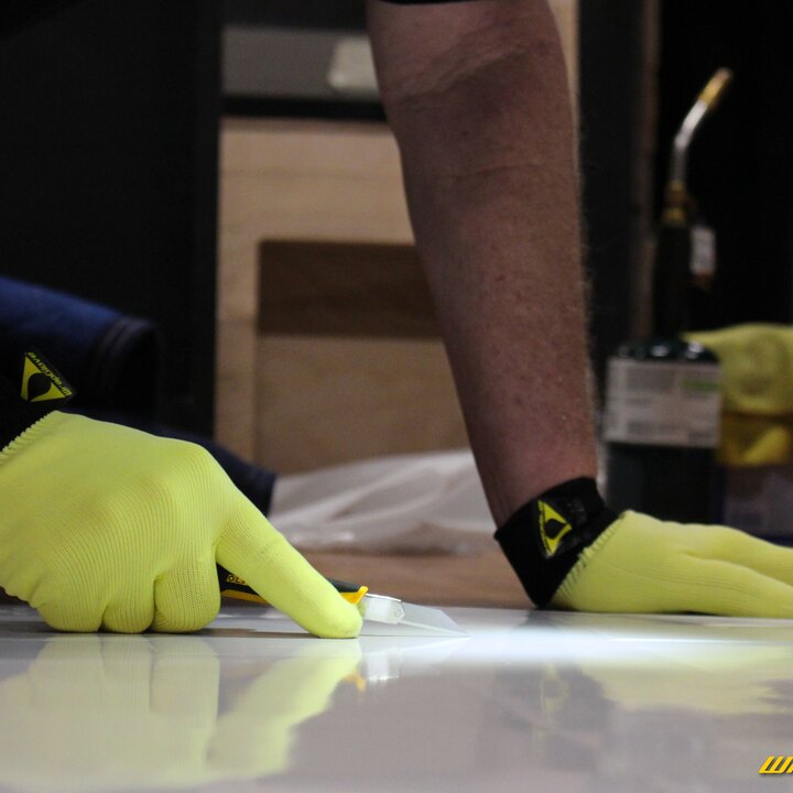 Det första valet för montörer över hela världen för sin hållbarhet, glidförmåga och greppstruktur för tryckkänsliga filmer. Den nya V3-handsken kommer att kännas mjukare på handen med förbättrad vattenabsorption som förblir blötare längre, vilket främjar bättre glidförmåga och ytterligare minskar motståndet på arbetsytan. Dessa förbättringar tillsammans med handsken som förtvättas kommer att ge ett bättre anpassat verktyg på handen.
