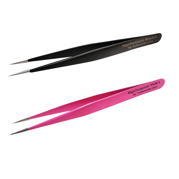 SignTweezer har utvecklats för snabb och exakt rensning av filmmaterial. Med sina mycket hårda och spetsiga spetsar är denna speciella pincett utmärkt för att ta bort vinylrester. Finns i svart eller rosa.