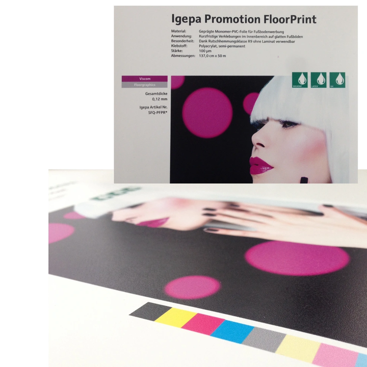 Präglad monomer PVC-film för golvreklam inomhus på släta golv.