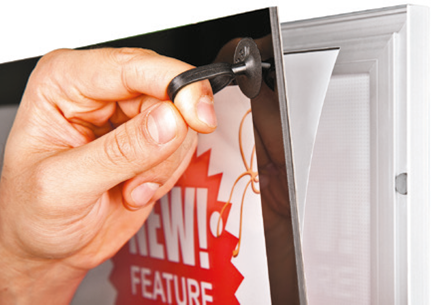 Den nya LED-ljuslådan har magnetfront vilket gör den helt plan likt en platt-tv. Ett mycket exklusivt utseende! Budskap byter du med hjälp av medföljande sugpropp. Fronten består av 2 mm klart plexiglas med en svart screentryckt ram. Magneter monterade på baksidan av fronten.