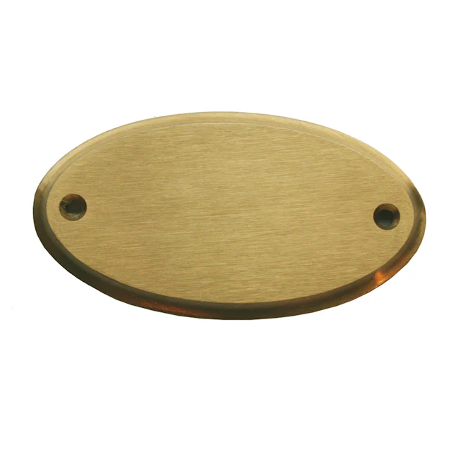 Oval dörrskylt i mässing, Har en snygg fasad kant. Storlek 83x43 mm.