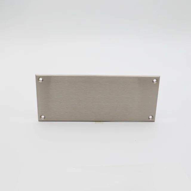 Rektangulär dörrskylt i mässing. Finns med eller utan hål och i flera olika utföranden. Storlek 170x70 mm.