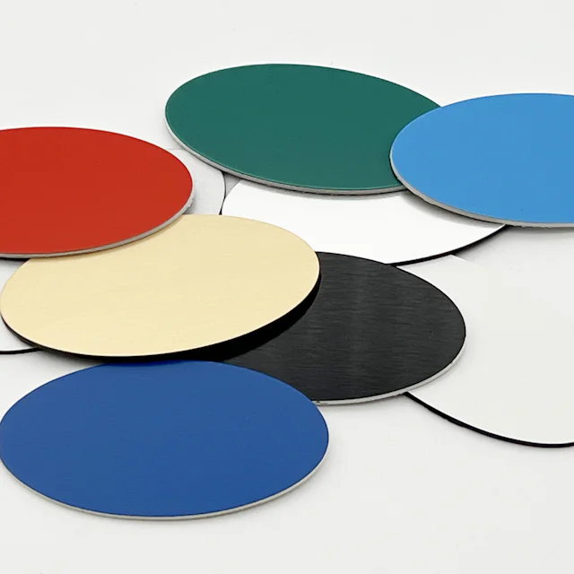 Namnskyltar av 1,6 mm (2-skikts) plastlaminat. För märkning med roterande gravyr, UV-print och lasergravyr CO2. Finns i flertalet olika färgkombinationer.