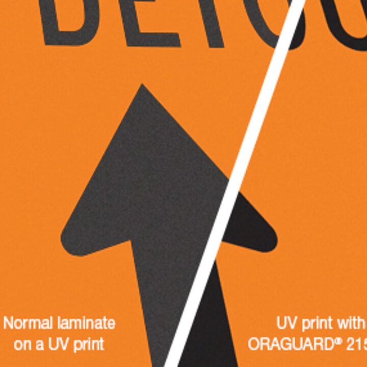 ORAGUARD® 215 är ett kallaminat för mediumtidsanvändning inom- och utomhus. Hjälpvärme kan användas. ORAGUARD® 215 tillför ett UV-skydd på ca 3 år till ditt tryck.